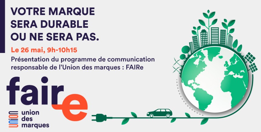 Rendez-vous le 26 mai à 9h00 pour découvrir le programme FAIRe ainsi que les dispositifs mis en œuvre par l’Union des marques pour vous accompagner concrètement sur le sujet de la responsabilité.